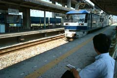 | 私も18:30分に大阪で待ち合わせの約束があったので、それに間に合うように当初の予定より1時間ほど繰り上げて広島をあとにしたよ。 ところがその途中、あると思っていた快速電車が水曜日だけ運休というアクシデントがありかなりのタイムロス。駅のホームで次の快速を待つ間、淋しく貨物電車が通り過ぎるのを待ち続ける私たちなのでありました。 |