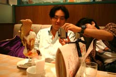 | 頭が壊れてきたメンバー約2名は意味もなく超特大パフェを注文・・・ こっちのパフェって信じられないくらい大きいねぇ。甘い物好きの私もここまで大きいのはパスだよ・・・ 巨大パフェの写真を撮りつつ満面の笑みを浮かべる頭の壊れた方々でした。 そうして今はユースホステルに泊まりつつ、酒を飲みまくるは煙草を吸いまくるはでどうしようもない状態に。出入り禁止とかにならないよねぇ・・・ 過度の疲労とアルコールで完全に頭のおかしくなった我々は携帯電話をいじくりつつ、イタデンをかけるづけるのであった・・・ |