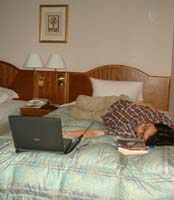 昨日はさすがに皆さんお疲れだったようで、私が寝る頃に庄屋さんはこんな状態に・・・ ノートパソコンにデータスコープを刺して通信状態のまま死んじゃっているんだよね。携帯の通話料は果たして大丈夫なのか!? |