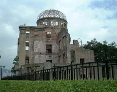 さて、今日は気を取り直していきましょうしょうか、ということでとりあえず市電に乗って原爆ドームに。 うむ〜、さすがに実物は迫力がありますな。修学旅行なんかで西日本に来たことが一切無いから、こういうのを見るのはかなり新鮮に感じるんだよね。 その後修学旅行生に混じって、資料館の見学・・・めちゃくちゃベタじゃんか。 |