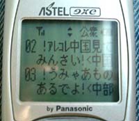 広島から大阪まで約6時間の乗車中にPHSをいじっていたらとんでもないことが! なんとMOZIOサービスの内容が中国エリアに限ったものになっているよ! しかもなんか方言になっているし。 iモードも見習って欲しいものだね(なんでだよ!?) |