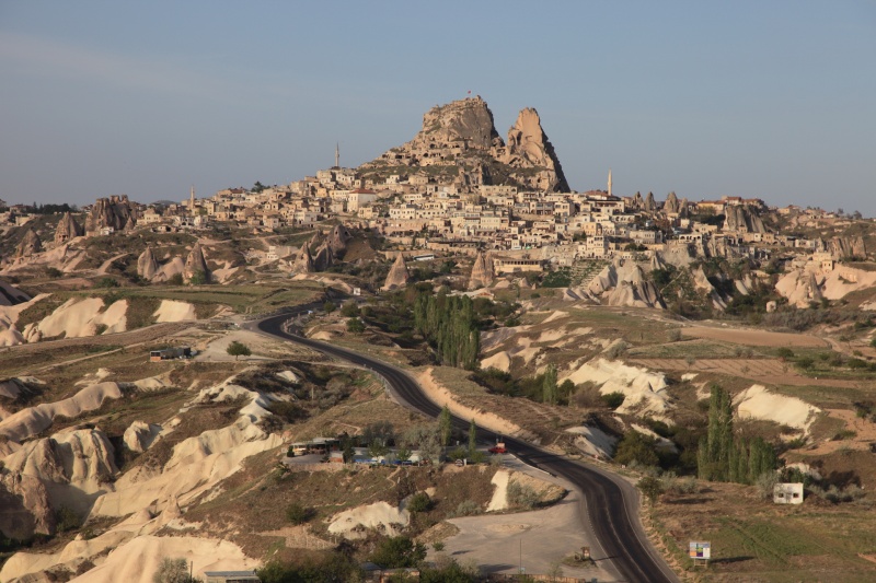 巨大な岩山を掘って作られた住居群ことウチヒサル。その周りには現在も街が広がっています。