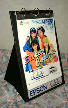これは自分でもどうしたのかよく覚えていないんだけど、気がついたら家にあったという状態なもので(汗)。 カラープリンタの印字サンプルを入れておいて、それをめくれるようにしてあるものなのですが、家にあってもひたすら邪魔なだけ。バインダーにはならないし、入力時に使うスタンドにもならないしね・・・。 |